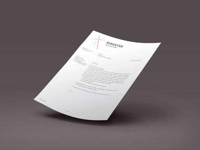 Logo & Corporate Design Entwicklung für die Agentur Synektar in München. Veranschaulichung verschiedener Grafik-Elemente, Veredelungen und Schriftarten.